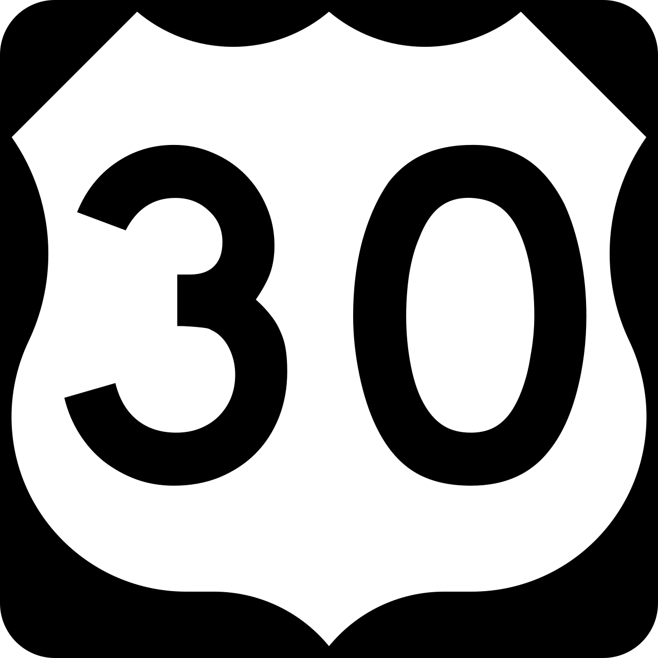The sign for U.S. Highway 30. At 3,112 miles, it’s the third longest U.S. Highway in the numbered highway system. Source: wikipedia.org